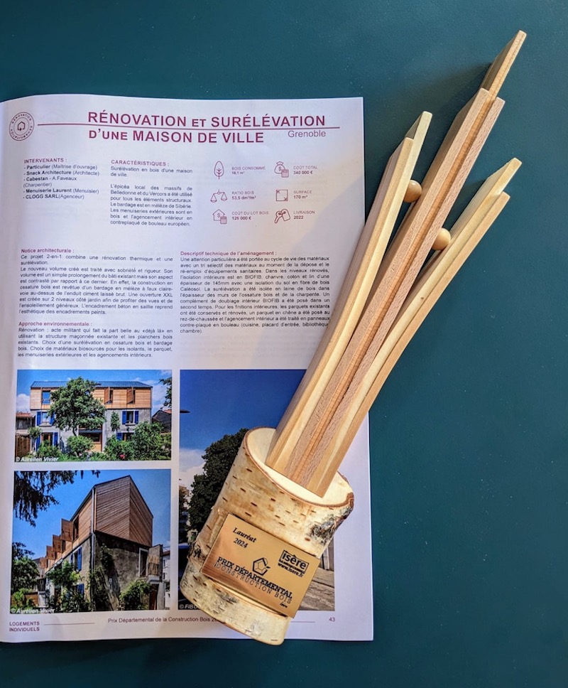 En septembre 2024, nous avons eu le plaisir de recevoir le Prix Départemental de la Construction Bois pour le projet LXC visible ici . Merci à FIBOIS38 pour son soutien.